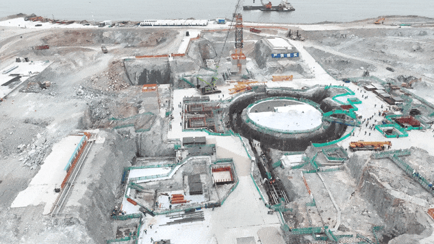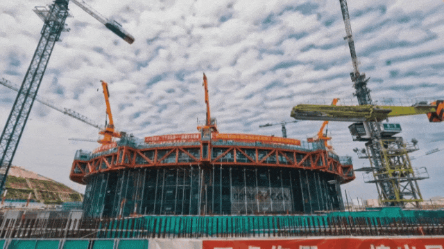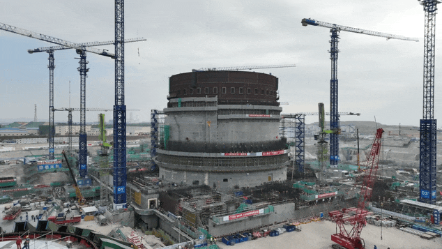 陸豐5號(hào)機(jī)組穹頂?shù)跹b完成,6號(hào)機(jī)組處在土建和安裝并行推進(jìn)階段。